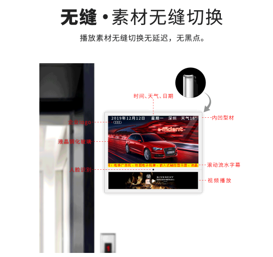 乘坐電梯往往是最無聊的時候,尤其是在電梯口的等待期。因此,如果在電梯口布置液晶廣告機,也能消磨觀眾的等待時間,而且這段時間比其他時段更能吸引眼球。這種廣告宣傳方式更有效,更能讓人記憶猶新;